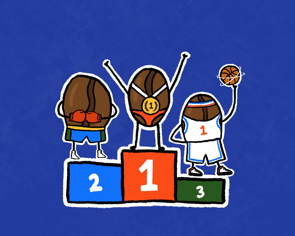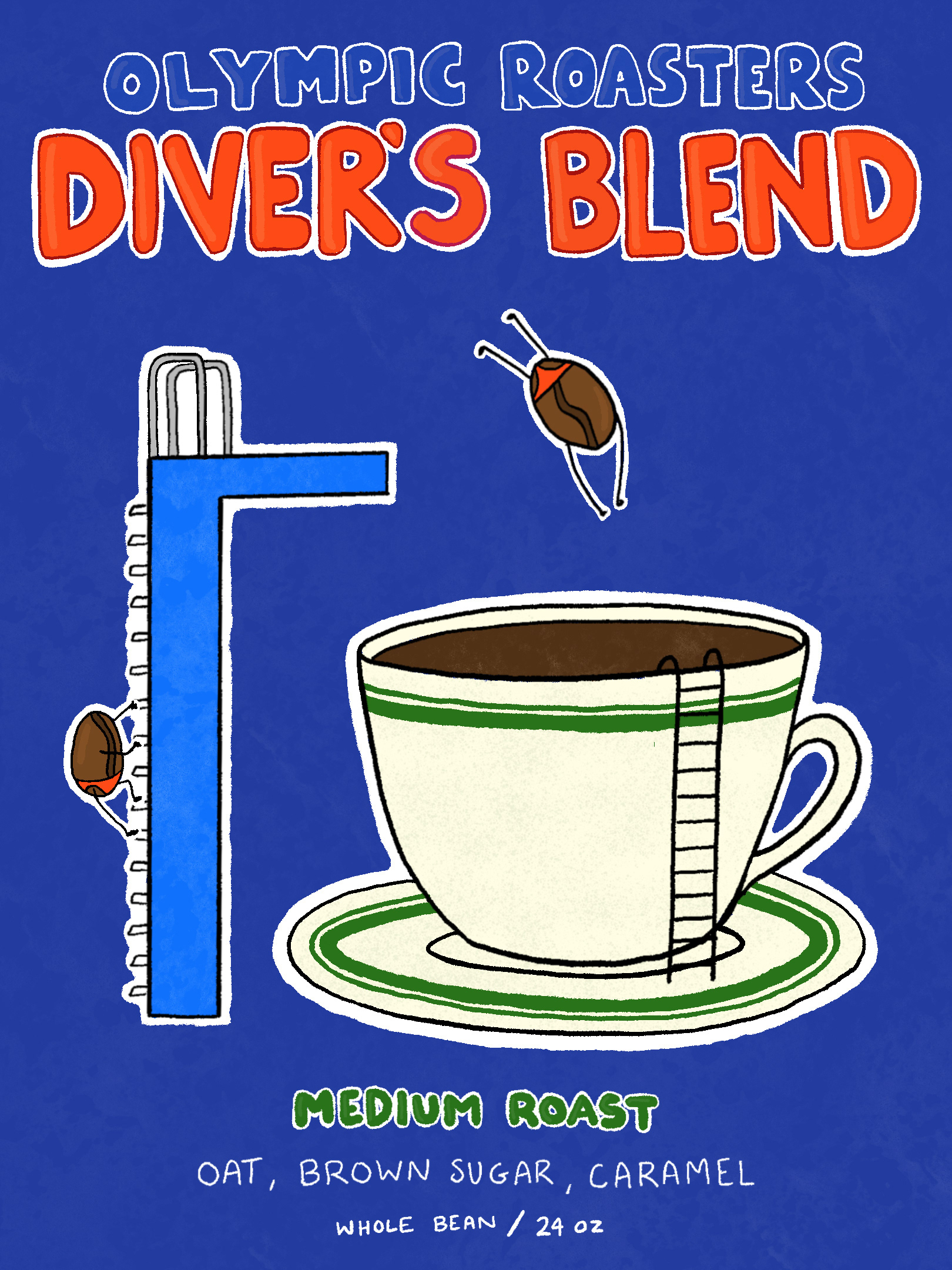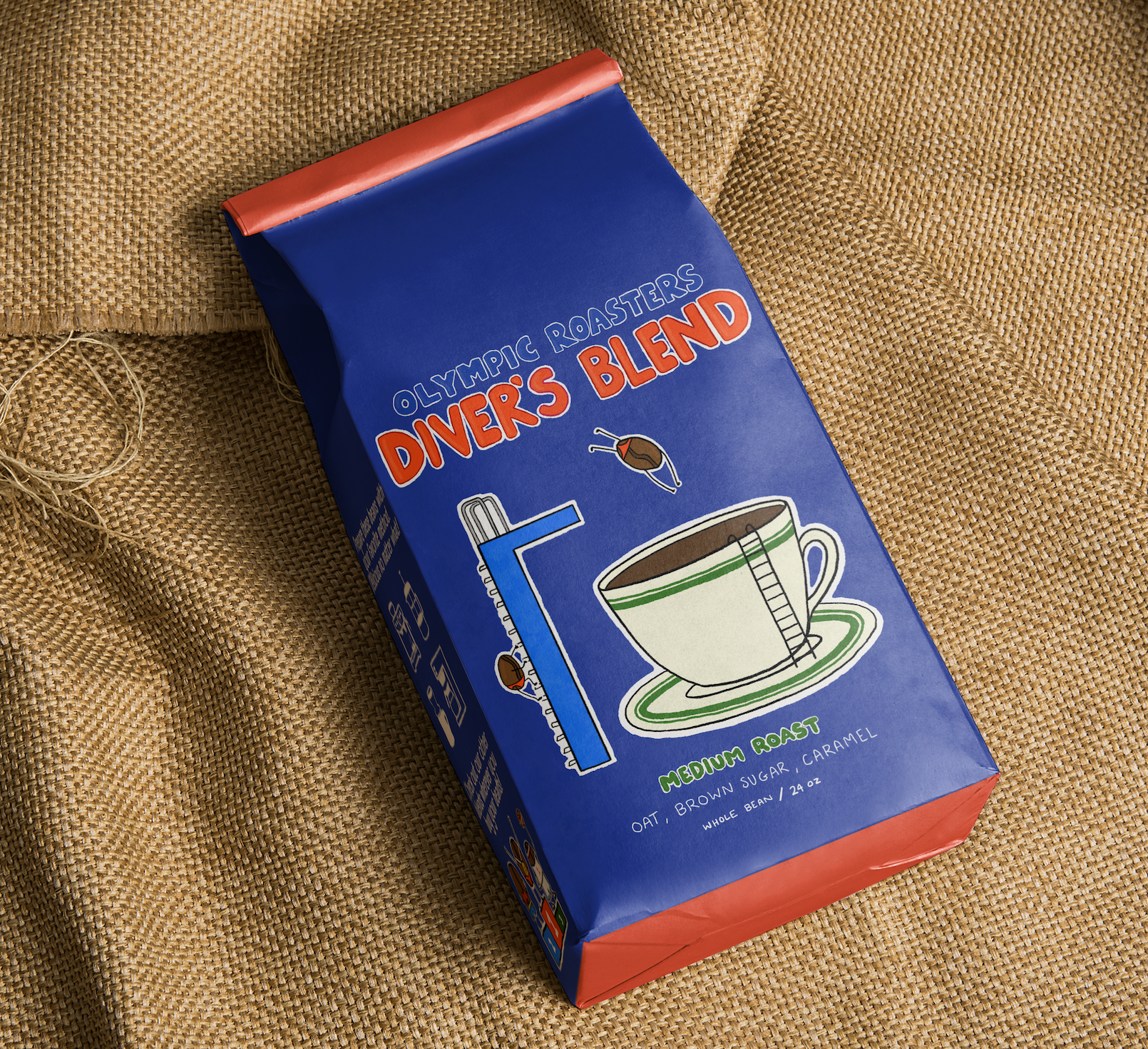 A playful concept for a coffee brand where every blend highlights a different olympic sport: Diver's Blend, Boxer's Blend, Baller's Blend etc.